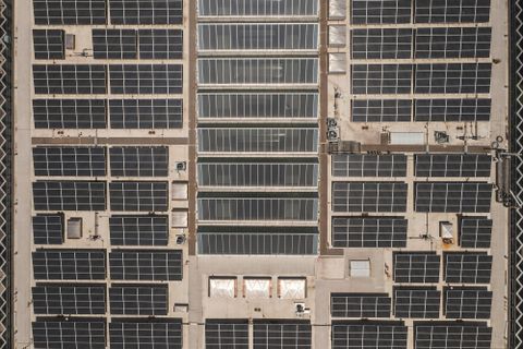 Technologien kombiniert: effiziente Sole-Kälteanlagen für Kühlung, Wärmerückgewinnung für Büros, PV-Anlagen mit Ost-West-Belegung, Latent-Wärmespeicher für Überschussstrom und Ladesäulen für E-Fahrzeuge.